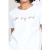 Stylové bílé tričko s výrazným hnědým nápisem, které vynikne v každém outfitu. Pohodlný střih, příjemný materiál.