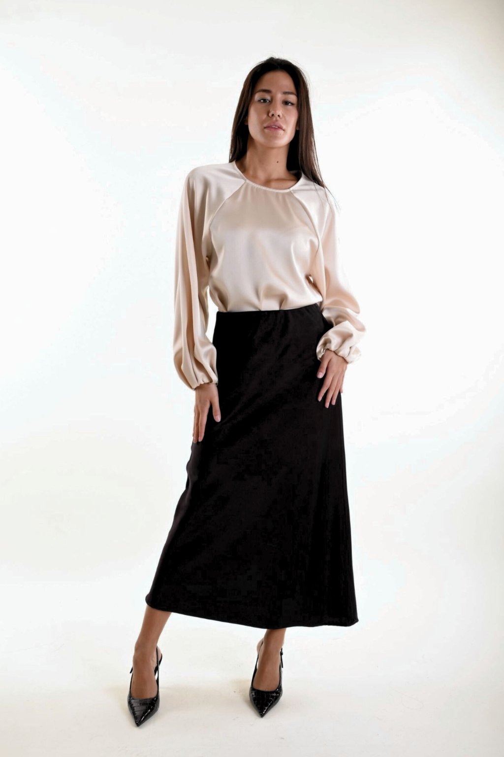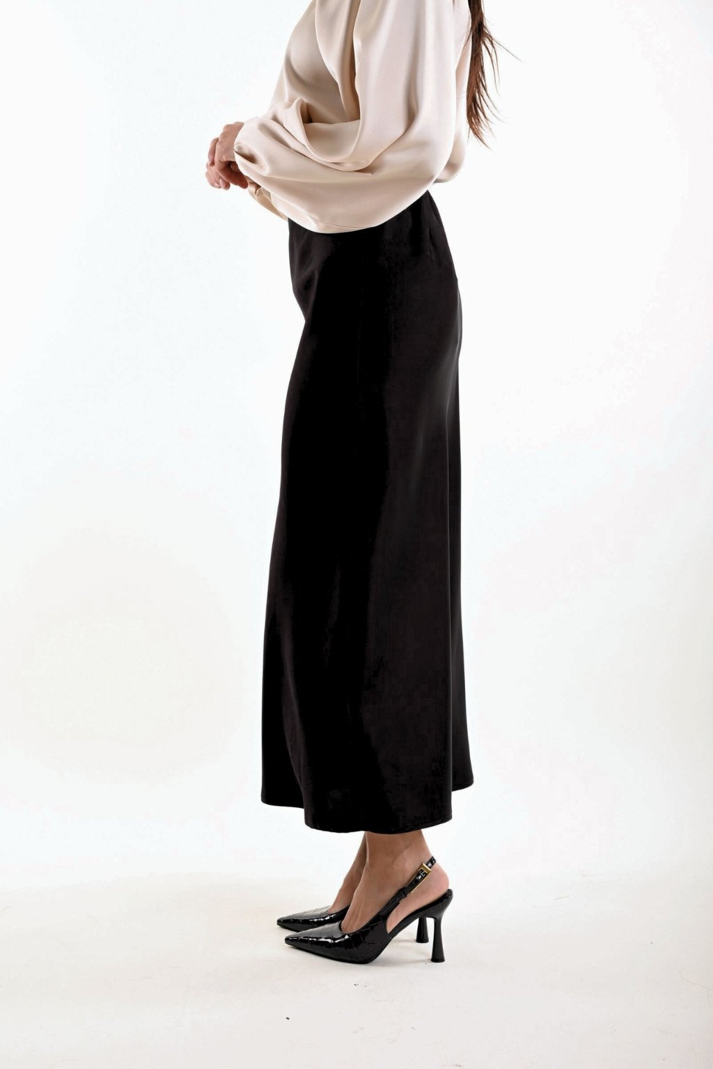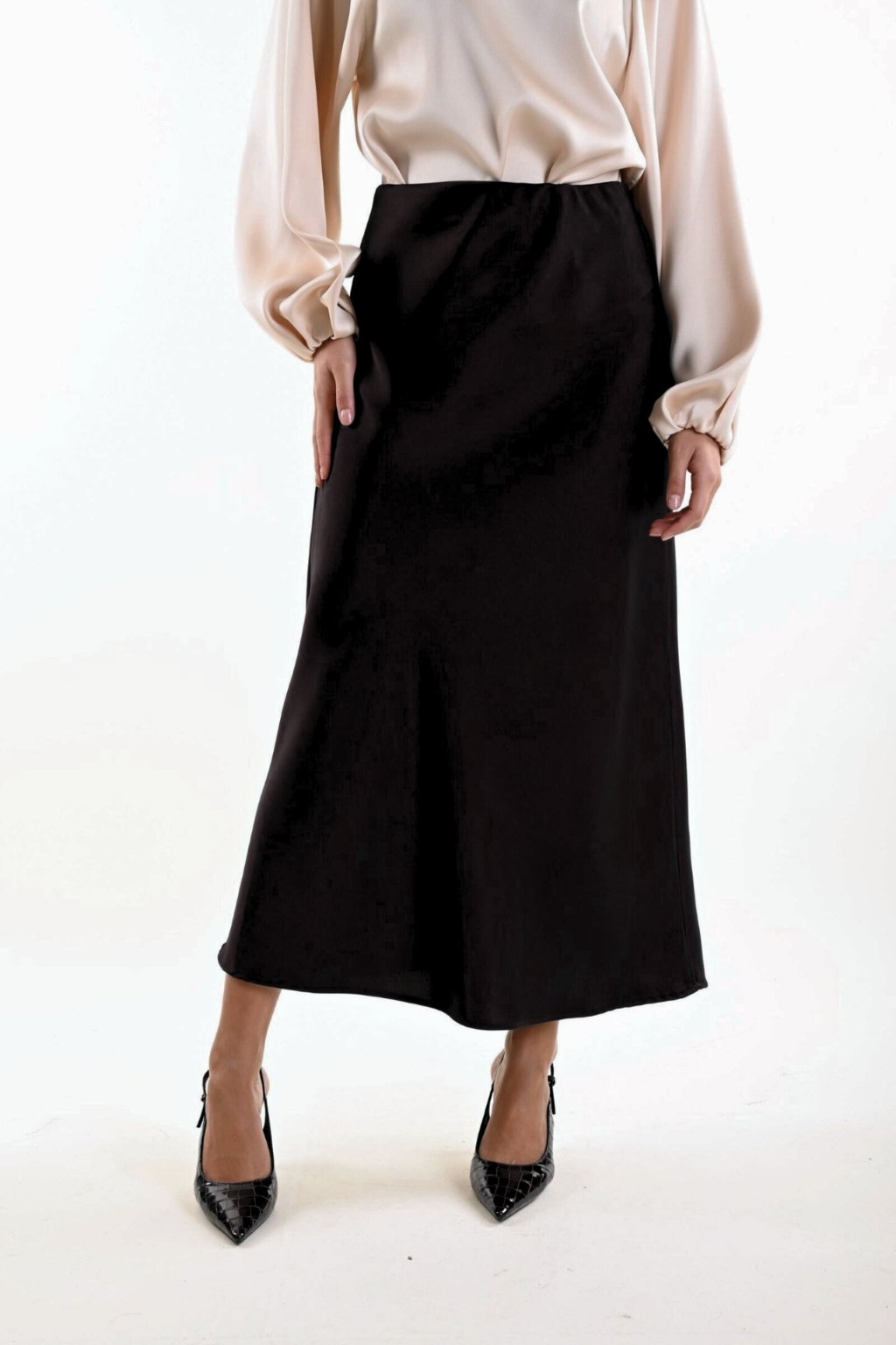 Objevte eleganci a pohodlí s midi saténovou sukní MYASTREET.