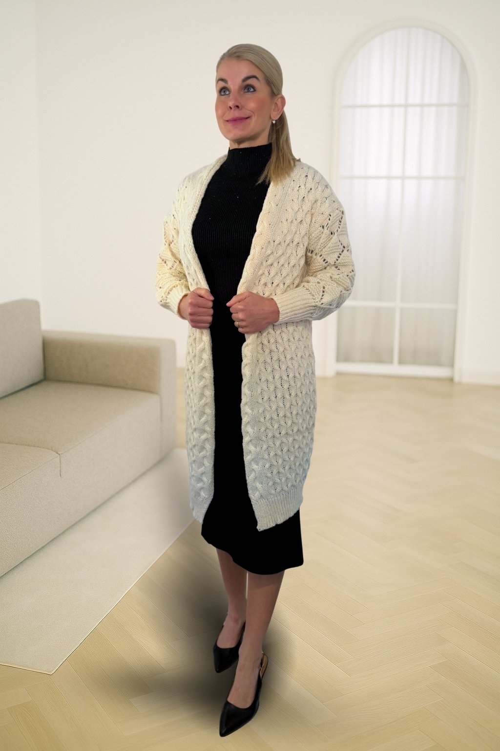 Cardigan má volný, pohodlný střih, který se snadno přizpůsobí různým typům postavy a umožňuje pohodlné vrstvení i přes tričko, halenku nebo lehký svetr. Jemná pletenina dodává modelu strukturu a zajišťuje, že se krásně přizpůsobí pohybu. Otevřený přední design nabízí jednoduché a elegantní stylingové možnosti. Díky své univerzálnosti se cardigan skvěle hodí pro každodenní nošení, do práce, na volný čas i na večerní posezení. Snadno jej zkombinujete s džínami, šaty či sukní a vytvoříte pohodlný, stylový outfit bez námahy.